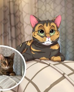 Muuta lemmikkisi hauskaksi Disney-tyylin piirroshahmoksi. Onko koirasi röyhkeä poika? Onko kissallasi hullu puoli? Ihana lemmikkikuva tuo esiin lemmikkisi uniikin kaudeuden sekä persoonallisuuden. Täydellinen taideteos ilahduttamaan kotia, tai vaikkapa lahja perheelle ja ystäville, joilla on erityinen lemmikki. Lemmikkikuva on aina yhtä ainutlaatuinen kuin lemmikkisikin!